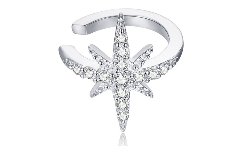 Εντυπωσιακό σκουλαρίκι cuff, το οποίο προορίζεται στο αυτί και δεν χρειάζεται τρύπα για να το φορέσετε. Είναι κατασκευασμένο από ασήμι 925 και διακοσμημένο με λευκή κυβική ζιρκόνια που προσφέρει εξαιρετική λάμψη στο κόσμημα.Είναι ένα κόσμημα υψηλής αισθητικής που συνδυάζεται υπέροχα με όλες τις καθημερινές σας εμφανίσεις.