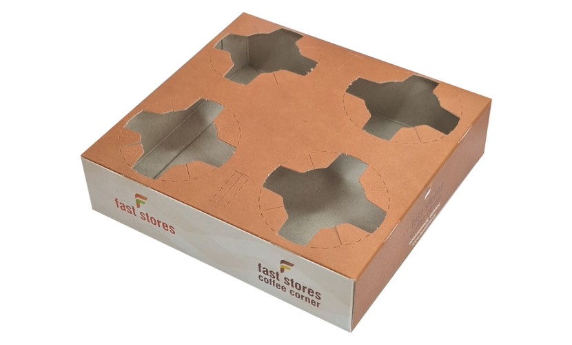 FAST STORES & COFFEE CORNER χάρτινη ποτηροθήκη, 4 θέσεων, 50τμχ