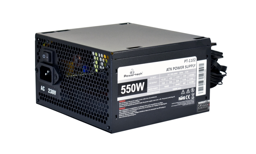 POWERTECH τροφοδοτικό για PC PT-1102, 550W, ATX, 120mm Fan