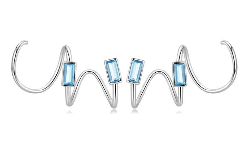 Ιδιαίτερα σκουλαρίκια, επιπλατινωμένα, διακοσμημένα με κυβική ζιρκόνια μπλε χρώματος, τα οποία στερεώνονται στον λοβό του αυτιού δημιουργώντας ένα εντυπωσιακό εφέ.Είναι ένα κόσμημα υψηλής αισθητικής που συνδυάζεται υπέροχα με όλες τις καθημερινές σας εμφανίσεις.