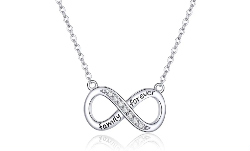 Εντυπωσιακό κολιέ με το σύμβολο του απείρου, σε ασημί χρώμα, διακοσμημένο με κυβική ζιρκόνια, λευκού χρώματος που προσφέρει εξαιρετική λάμψη στο κόσμημα.Μπορεί φορεθεί μόνο του ή να συνδυαστεί εξαιρετικά με άλλα κολιέ, για layering.Κατασκευάζεται από ασήμι 925 και διαθέτει κρίκους αυξομείωσης ώστε να το ρυθμίσετε στην επιθυμητή θέση.Μπορεί να φορεθεί όλες τις ώρες της ημέρας και με κάθε στυλ ντυσίματος!