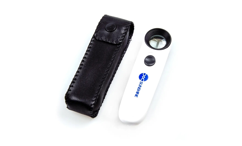 Μεγεθυντικός φακός χειρός με LED φωτισμό της Sunshine, ιδανικός για επιθεώρηση ηλεκτρονικών εξαρτημάτων σε εργασίες επισκευής.Διαθέτει μεγεθυντικό φακό, διαμέτρου 21mm με μεγέθυνση 40x.Είναι εξαιρετικά ελαφρύς με άνετη λαβή και η τροφοδοσία του γίνεται με 2x AAA μπαταρίες (δεν συμπεριλαμβάνονται).
