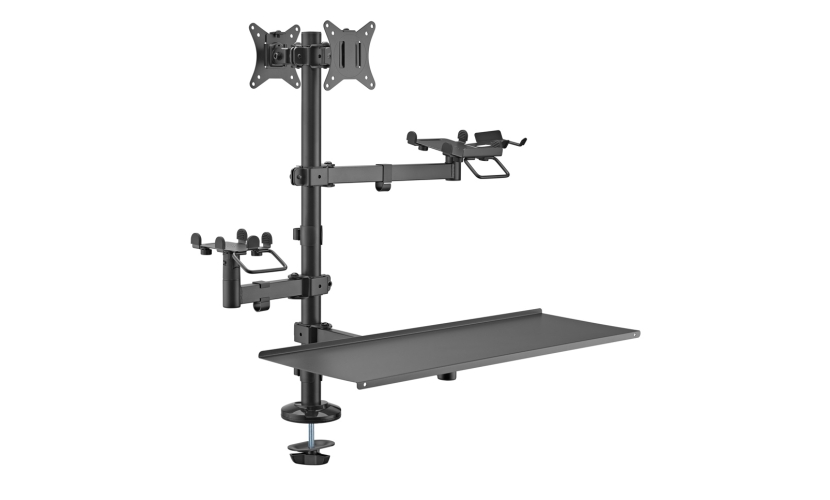-για τοποθέτηση 2x οθόνων-με βάση για POS-με βάση για εκτυπωτή αποδείξεων-με βάση για barcode scanner-με ράφι για ποντίκι & πληκτρολόγιο-υψηλής ποιότητας & ανθεκτική κατασκευή-περιστρεφόμενη βάση με ρυθμιζόμενη κλίση-κλιπ καλωδίων για καλύτερη οργάνωση των καλωδίων-τοποθετείται στην επιφάνεια του γραφείου με σφιγκτήρα