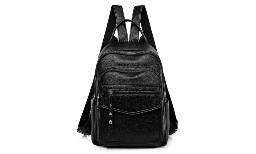 Τσάντα πλάτης με μοντέρνο design, σε μαύρο χρώμα, ιδανική για όλες τις ώρες της ημέρας. Διαθέτει πολλές εσωτερικές και εξωτερικές τσέπες, για να τοποθετήσετε χρήσιμα αντικείμενα.Κατασκευασμένη από ανθεκτικό υλικό με δερμάτινη υφή και μεταλλικές λεπτομέρειες.