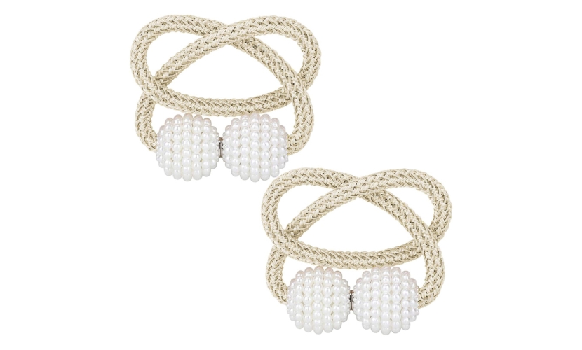 Δέστρα κουρτίνας με μαγνήτη, σε μπεζ απόχρωση, ιδανική για το δέσιμο - κράτημα της κουρτίνας. Πρόκειται για ένα πρακτικό αξεσουάρ, με κομψό σχεδιασμό που δεν τσαλακώνει το ύφασμα της κουρτίνας. Το σετ αποτελείται από 2 τεμάχια.