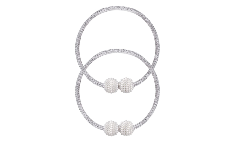 Δέστρα κουρτίνας με μαγνήτη, σε γκρι απόχρωση, ιδανική για το δέσιμο - κράτημα της κουρτίνας. Πρόκειται για ένα πρακτικό αξεσουάρ, με κομψό σχεδιασμό που δεν τσαλακώνει το ύφασμα της κουρτίνας. Το σετ αποτελείται από 2 τεμάχια.