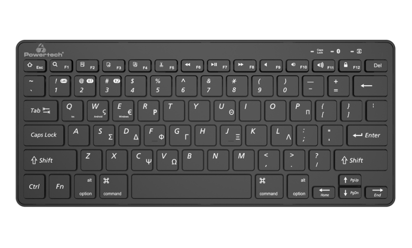 Ασύρματο πληκτρολόγιο της Powertech, ιδανικό για συσκευές όπως desktop, laptop, smartphone και tablet. Συνδέεται ασύρματα με τις συσκευές σας μέσω 2.4GHz USB Nano receiver και Bluetooth. Επιπλέον, υποστηρίζει ταυτόχρονη σύνδεση με έως 3 συσκευές. Είναι συμβατό με iOS, Android & Windows λειτουργικά. Τροφοδοτείται από 2x AAA μπαταρίες (συμπεριλαμβάνονται).
