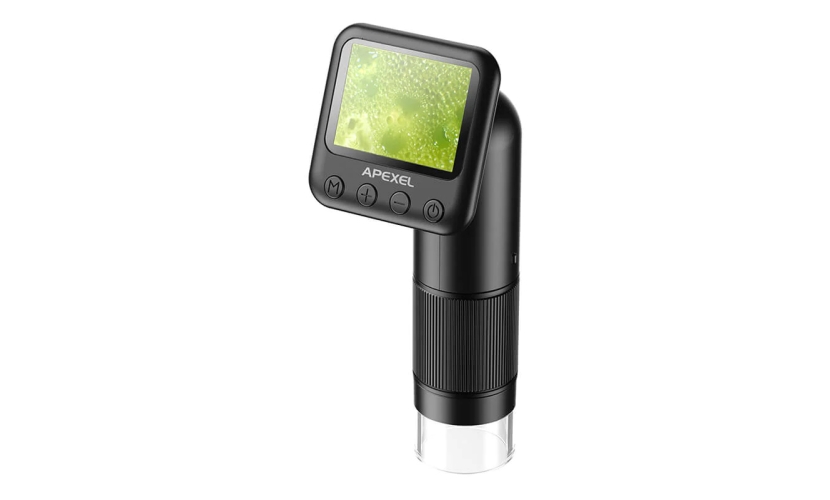 Φορητό, ψηφιακό μικροσκόπιο της Apexel με εμβέλεια zoom από 400x έως 800x. Είναι ιδανικό για την παρατήρηση μικρών αντικειμένων, εντόμων, φυτών κ.α.Εξοπλίζεται με μεγάλη 2" οθόνη και LED φωτισμό, ο οποίος διευκολύνει την χρήση του σε πιο σκοτεινά περιβάλλοντα. Επιπλέον, υποστηρίζει λήψη φωτογραφιών και βίντεο που αποθηκεύονται εσωτερικά σε κάρτα micro SD (δεν συμπεριλαμβάνεται).Τροφοδοτείται από μπαταρία χωρητικότητας 700mAh, η οποία φορτίζει μέσω θύρας USB-C.