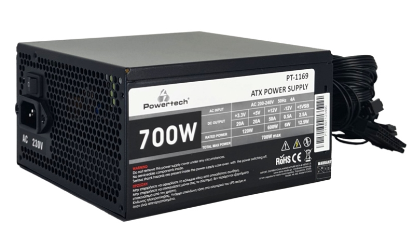 POWERTECH τροφοδοτικό για PC PT-1169, 700W, ATX, 140mm Fan