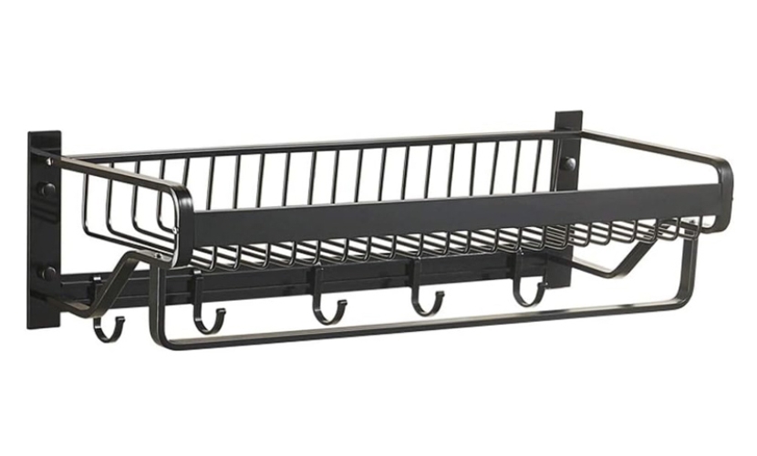 Σημεία ενδιαφέροντος προϊόντος-με ράφι-με 5 γάντζους-2 τρόποι τοποθέτησης-μεταλλική κατασκευή