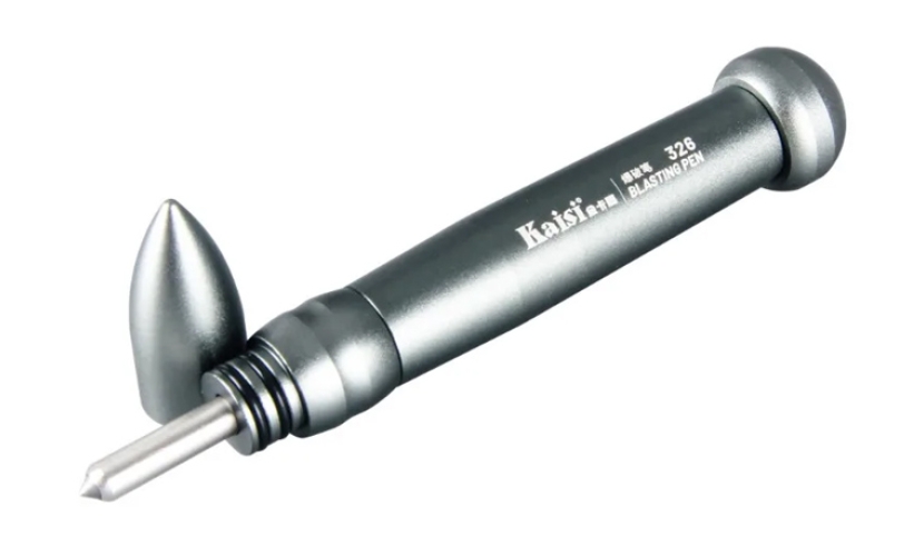 Εργαλείο θραύσης τζαμιών της Kaisi, κατάλληλο για εργασίες επισκευής κινητών τηλεφώνων. Επιτρέπει την εύκολη αφαίρεση του τσαμιού της κάμερας και του πίσω καλύμματος. Η δύναμη του χτυπήματος μπορεί να ρυθμιστεί για ακόμη μεγαλύτερη ακρίβεια.
