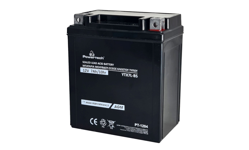 POWERTECH μπαταρία μολύβδου μοτοσυκλέτας PT-1204, 12V 7Ah, AGM, YTX7L-BS