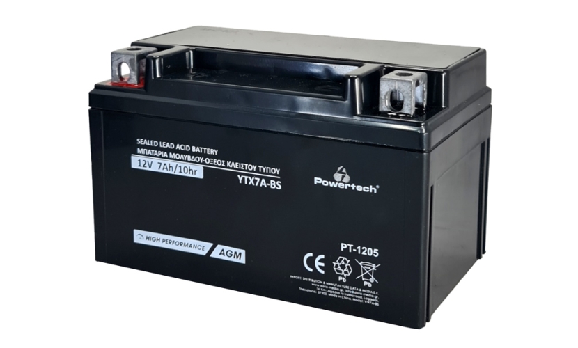 POWERTECH μπαταρία μολύβδου μοτοσυκλέτας PT-1205, 12V 7Ah, AGM, YTX7A-BS