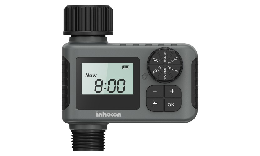 Ψηφιακός προγραμματιστής ποτίσματος της Inhocon, ιδανικός για εργασίες που σχετίζονται με το πότισμα και την άρδευση των φυτών στον κήπο. Σας επιτρέπει με εύκολο τρόπο να ορίζετε τον χρόνο του ποτίσματος και την διάρκεια του σε ήμερες. Επιπλέον, διαθέτει λειτουργία αναβολής του ποτίσματος λόγο βροχής.Η τροφοδοσία του γίνεται με 2x AA μπαταρίες (δεν συμπεριλαμβάνονται).