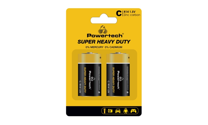 POWERTECH μπαταρίες Zinc Carbon Super Heavy Duty PT-1221, R14 1.5V, 2τμχ