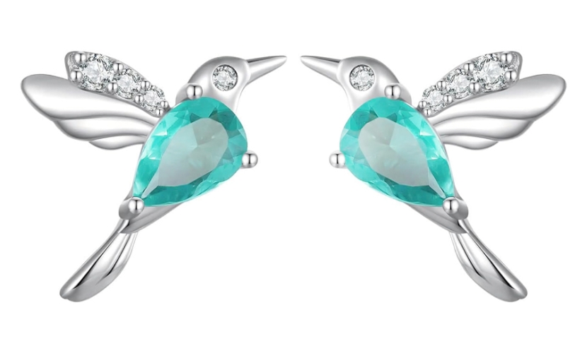 Καρφωτά σκουλαρίκια με σχήμα πουλιού Bamoer, κατασκευασμένα από ασήμι 925, διακοσμημένα με διάφανο κρύσταλο βεραμάν χρώματος και αστραφτερή κυβική ζιρκόνια λευκού χρώματος.Είναι ένα κόσμημα υψηλής αισθητικής που συνδυάζεται υπέροχα με όλες τις καθημερινές σας εμφανίσεις.