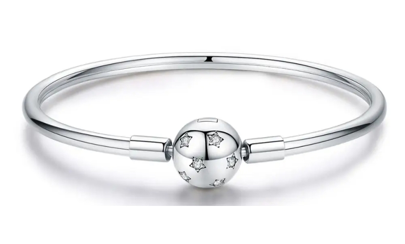 Εντυπωσιακό βραχιόλι χειροπέδα τύπου Pandora, με στρογγυλό κούμπωμα διακοσμημένο με κυβική ζιρκόνια λευκού χρώματος που προσφέρει λάμψη στο κόσμημα. Μπορεί φορεθεί μόνο του ή να αποτελέσει βάση για την προσθήκη charm, κάνοντας το κόσμημα μοναδικό. Κατασκευάζεται από ασήμι 925 και διαθέτει κούμπωμα ασφαλείας.Μπορεί να φορεθεί όλες τις ώρες της ημέρας και με κάθε στυλ ντυσίματος!