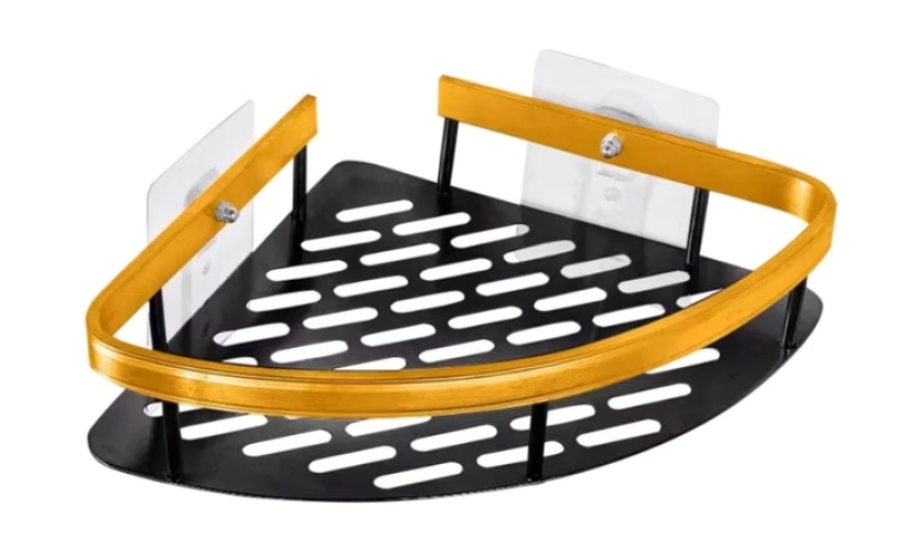 Γωνιακό ράφι τοίχου HOME USE, ιδανικό για την αποθήκευση μικροαντικειμένων στο μπάνιο ή την κουζίνα.Η τοποθέτηση του στον τοίχο γίνεται εύκολα με αυτοκόλλητες βάσεις, η οποίες βιδώνουν πάνω στο ράφι.