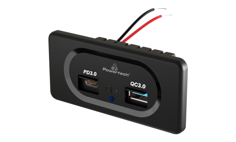 Πρίζα USB της Powertech, κατάλληλη για τοποθέτηση σε σκάφη και οχήματα όπως τρακτέρ κ.α. Εξοπλίζεται με θύρες φόρτισης USB και USB-C για την φόρτιση συσκευών που φορτίζουν μέσω θύρας USB.Διαθέτει προστατευτικά συρόμενα καλύμματα, τα οποία προστατεύουν τις θύρες από τη σκόνη όταν δεν χρησιμοποιούνται.
