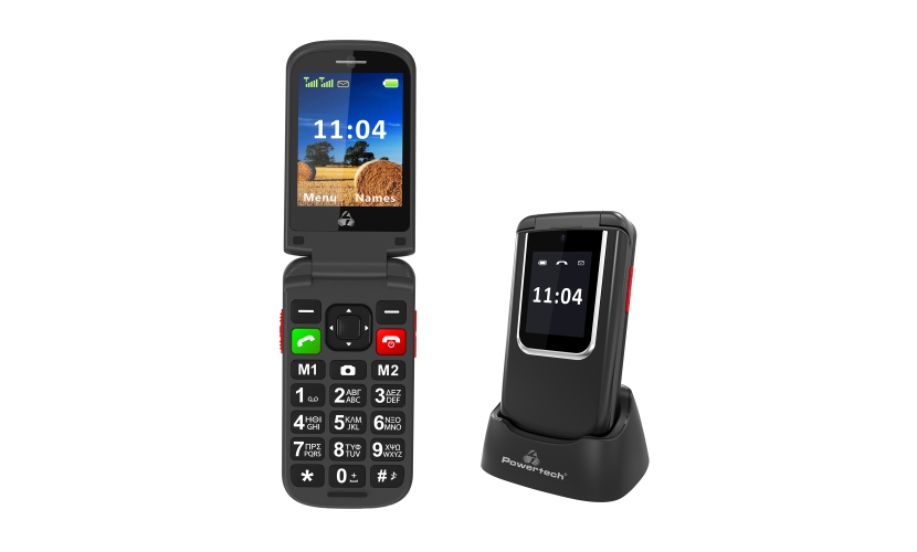 POWERTECH κινητό τηλέφωνο Sentry 4G Flip, 2.8/1.77", dual SIM, πλήκτρο SOS, μαύρο