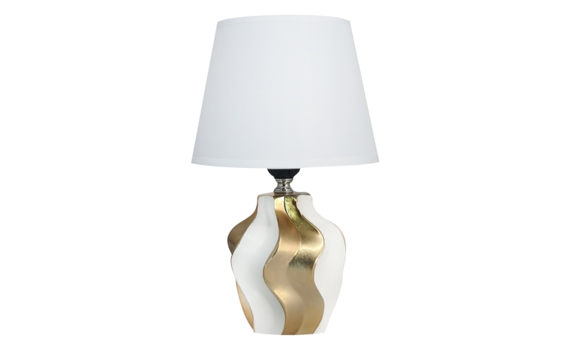 POWERTECH επιτραπέζιο φωτιστικό HLL-0135, E27 κεραμική βάση, λευκό/χρυσό