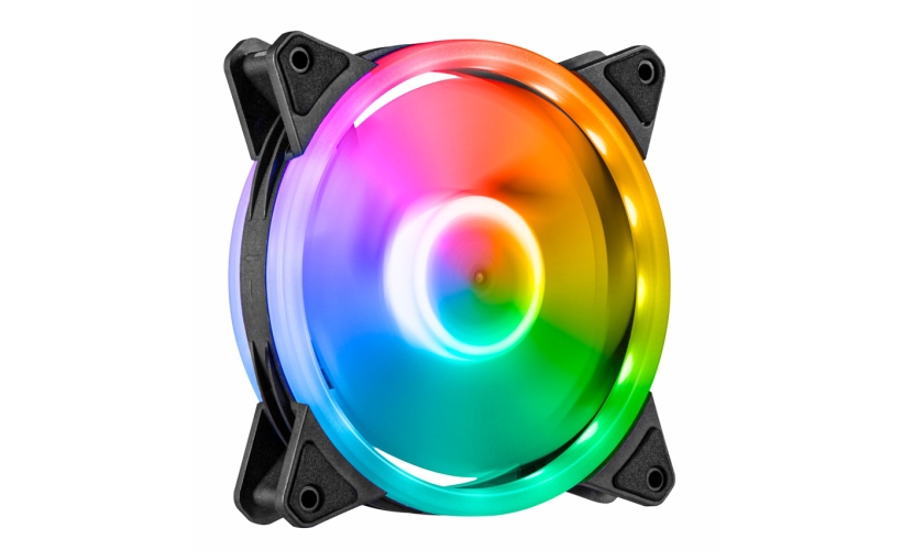 Σημεία ενδιαφέροντος προϊόντος-κομψός σχεδιασμός με dual ring RGB φωτισμό-ταχύτητα ανεμιστήρα 1200RPM-8 αντικραδασμικά pads-συνεχώς μεταβαλλόμενος φωτισμός-κυρτές λεπίδες για καλύτερη απόδοση ψύξης-λειτουργία με χαμηλό θόρυβο
