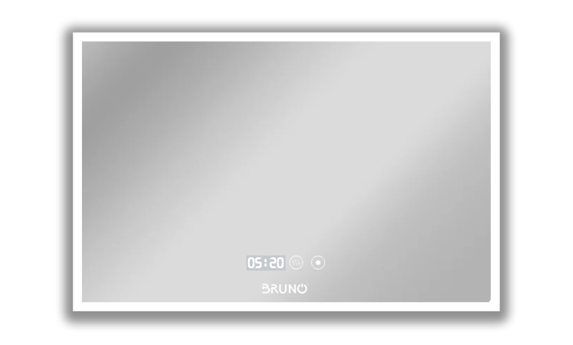 Καθρέφτης μπάνιου Bruno με εντυπωσιακό LED φωτισμό και αντιθαμβωτική λειτουργία.Εξοπλίζεται πλήκτρα αφής για την ενεργοποίηση/απενεργοποίηση του φωτισμού αλλά και της αντιθαμβωτικής λειτουργίας. Επιπλέον, διαθέτει ψηφιακή οθόνη για την ένδειξη της ώρας και της θερμοκρασίας.Η τροφοδοσία του καθρέφτη γίνεται μέσω κοινής πρίζας τοίχου.Οι καθρέφτες LED της Bruno κατασκευάζονται από ποιοτικά υλικά, με σύγχρονες μεθόδους και σύμφωνα με αυστηρά κριτήρια ποιοτικού ελέγχου, διασφαλίζοντας απρόσκοπτη, αξιόπιστη και μακροχρόνια λειτουργία.