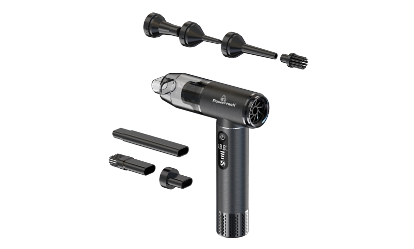 2 σε 1 σκουπάκι χειρός & air duster από την POWERTECH. Είναι ιδανικό για γρήγορο και αποτελεσματικό καθάρισμα στο σπίτι ή το αυτοκίνητο αλλά και για την απομάκρυνση της σκόνης από αξεσουάρ και οικιακά αντικείμενα όπως πληκτρολόγια, PC cases, κλιματιστικά, ηλεκτρονικές συσκευές κ.α.Διαθέτει 2 επίπεδα λειτουργίας και συνοδεύεται από διάφορα ακροφύσια κατάλληλα για διαφορετικές εφαρμογές.Επιπλέον, μπορεί να χρησιμοποιηθεί για το φούσκωμα φουσκωτών στρωμάτων αλλά και για την απομάκρυνση σκόνης και άμμου από το εσωτερικό οχημάτων.Τροφοδοτείται από επαναφορτιζόμενη μπαταρία χωρητικότητας 5000mAh, η οποία προσφέρει αυτονομία για έως και 28 λεπτά.