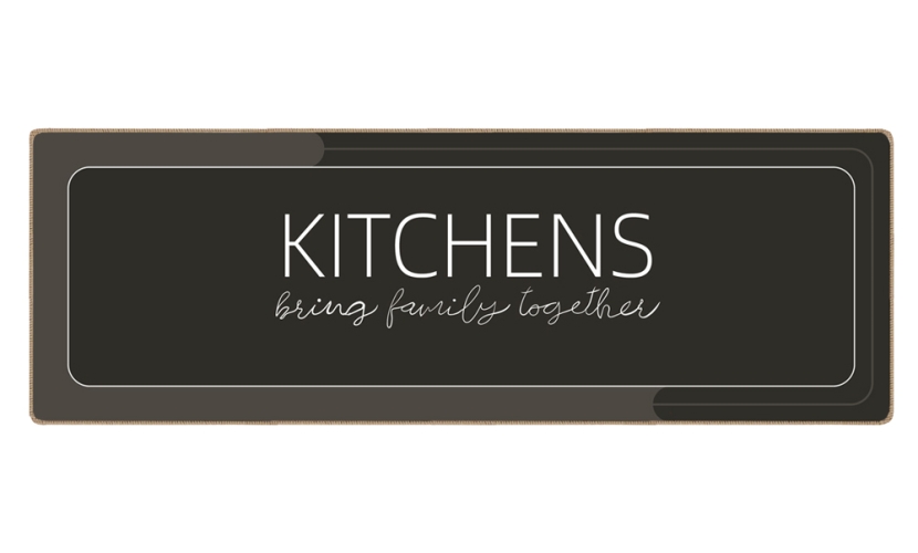 Χαρακτηριστικά-υλικό: πάνω μέρος: ύφασμα (imitation linen), κάτω μέρος: καουτσούκ-διαστάσεις: 150 x 50cm-πάχος: 3.5mm-σχέδιο: Kitchens bring family together-χρώμα: καφέ