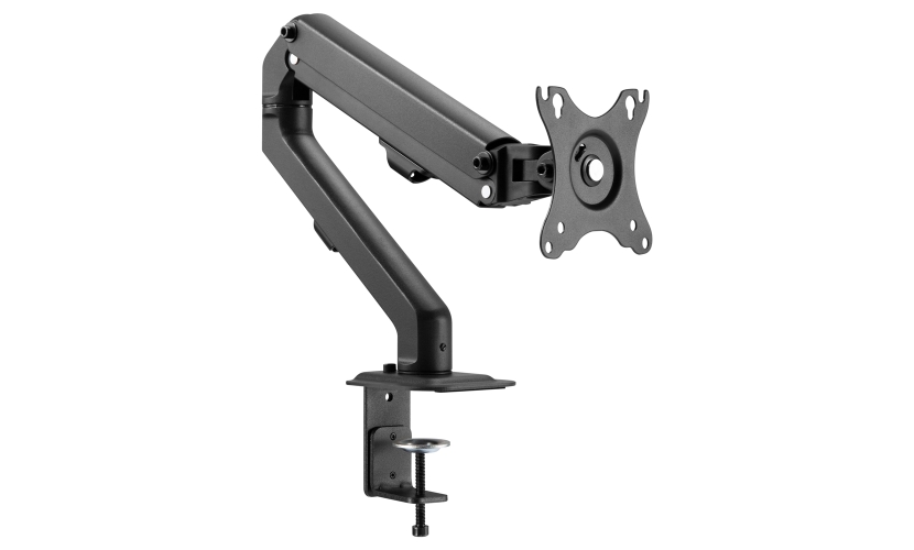 Τεχνικά χαρακτηριστικά-μέγεθος οθόνης: 17"-27"-φορτίο: 2 έως 7kg-συμβατότητα VESA: 100x100, 75x75-εμβέλεια κλίσης: +90°~-45°-εμβέλεια περιστροφής: +90°~-90°-περιστροφή οθόνης: +180°~-180°-πλήρης επέκταση βραχίονα: 463mm-τοποθέτηση: με σφιγκτήρα-συμβατότητα με κυρτή οθόνη: ναι-αποσπώμενη πλάκα VESA: όχι-cable management: ναι-υλικό: αλουμίνιο, ατσάλι, πλαστικό-διαστάσεις: 117 x 506 x 570mm-χρώμα: μαύρη