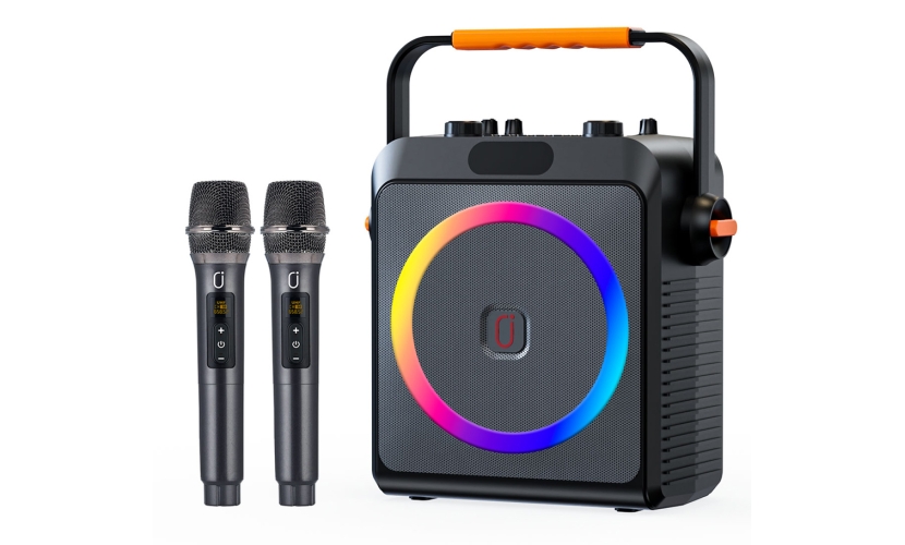 Ασύρματο φορητό ηχείο της JYX με 2x ασύρματα μικρόφωνα για να μετατρέψετε τις συναντήσεις με τους φίλους σας, σε ένα διασκεδαστικό karaoke party.Η σύνδεση του για την αναπαραγωγή της μουσικής γίνεται ασύρματα μέσω Bluetooth, ενσύρματα μέσω 3.5mm καλωδίου, ενώ, εξοπλίζεται και με υποδοχή για κάρτα μνήμης micro SD και USB flash drive. Διαθέτει κομψό πολύχρωμο φωτισμό με ρυθμιζόμενα εφέ και πλήκτρα με αριθμούς για αριθμημένη επιλογή τραγουδιού (υποστηρίζεται μόνο σε micro SD και USB flash drive).Μέσω των 2x θυρών 6.35mm σας δίνει την δυνατότητα σύνδεσης μικροφώνου και ηλεκτρικών μουσικών οργάνων όπως κιθάρα, πλήκτρα κ.α.Επιπλέον, ενσωματώνει 3.5mm θύρα για σύνδεση με smartphone που προσφέρει καθαρό ήχο κατά την διάρκεια live streaming.Τροφοδοτείται από επαναφορτιζόμενη μπαταρία χωρητικότητας 3000mah και η φόρτιση του γίνεται μέσω θύρας USB-C.