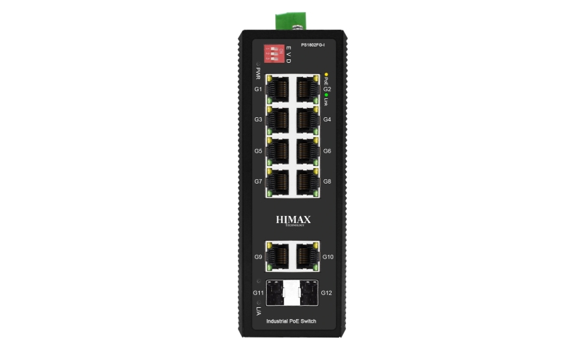 HIMAX industrial PoE switch PS1802FG-I, 8x GE PoE/2x GE/2x GF SFP θύρες, έως 1000Mbps