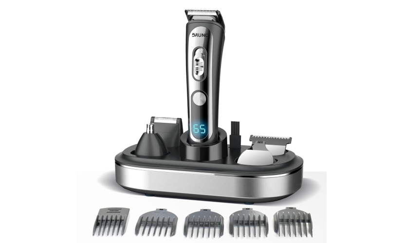 BRUNO BRN-0221 Κουρευτική/Ξυριστική μηχανή 5 σε 1, επαναφορτιζόμενη, ψηφιακή ένδειξη, σετ 16τμχ, black-Inox
