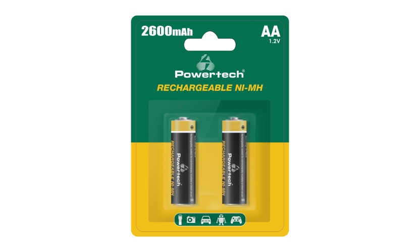POWERTECH επαναφορτιζόμενες μπαταρίες NI-MH PT-1404, AA, 2600mah, 1.2V, 2τμχ