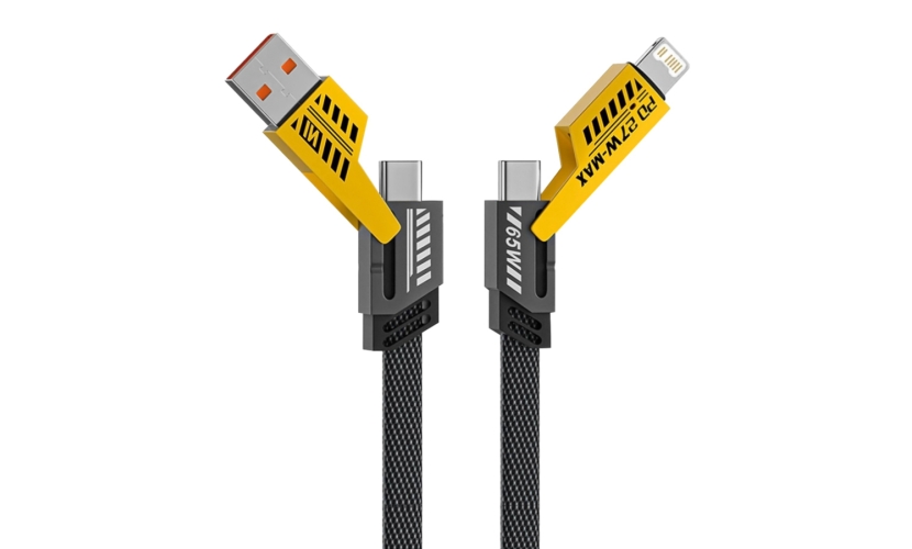 Σημεία ενδιαφέροντος προϊόντος-εναλλάξιμα βύσματα φόρτισης-φόρτιση με απόδοση έως 65W-λειτουργία μεταφοράς δεδομένων-καλώδιο με υφασμάτινη επένδυση-ανθεκτικά μεταλλικά βύσματα