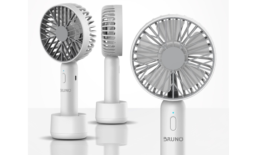 BRUNO BRN-0229 Φορητός ανεμιστήρας χειρός επαναφορτιζόμενος, με βάση και λουράκι μεταφοράς, λευκός-γκρί