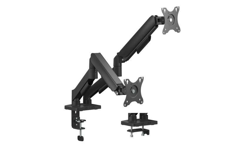Σημεία ενδιαφέροντος προϊόντος-για τοποθέτηση έως 2 οθονών-υψηλής ποιότητας & ανθεκτική κατασκευή-βραχίονας με ελατήριο για καλύτερη ισορροπία & προσαρμογή-περιστρεφόμενος βραχίονας με ρυθμιζόμενη κλίση-cable management σχεδίαση για καλύτερη οργάνωση των καλωδίων-με 2 σφιγκτήρες για τοποθέτηση στην επιφάνεια του γραφείου