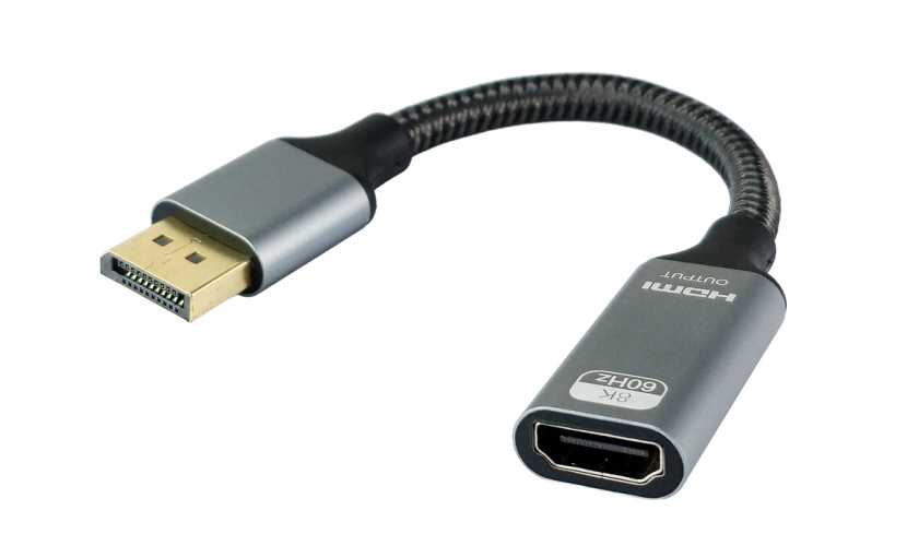 Τεχνικά χαρακτηριστικά-βύσμα 1: DisplayPort αρσενικό-βύσμα 2: HDMI θηλυκό-ανάλυση: 8K/60Hz-μήκος καλωδίου: 0.1m-υλικό: βύσμα: μεταλλικό, καλώδιο: υφασμάτινο, επαφές: gold-plated-χρώμα: μαύρος