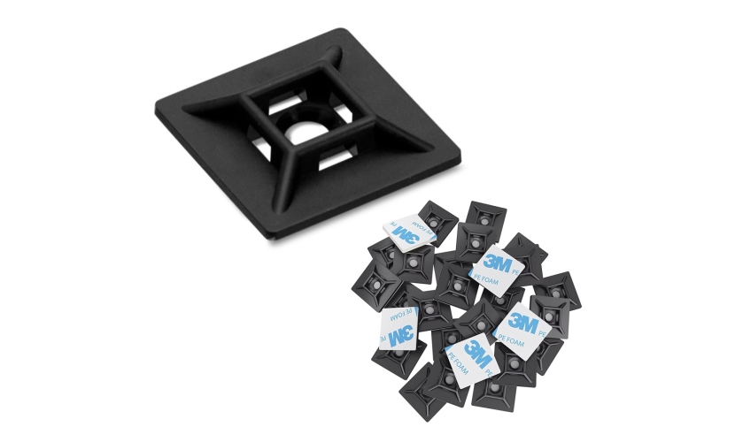 POWERTECH βάσεις δεματικών καλωδίων TIES-081, 3M αυτοκόλλητο, 2.82x2.82cm, μαύρο, 50τμχ