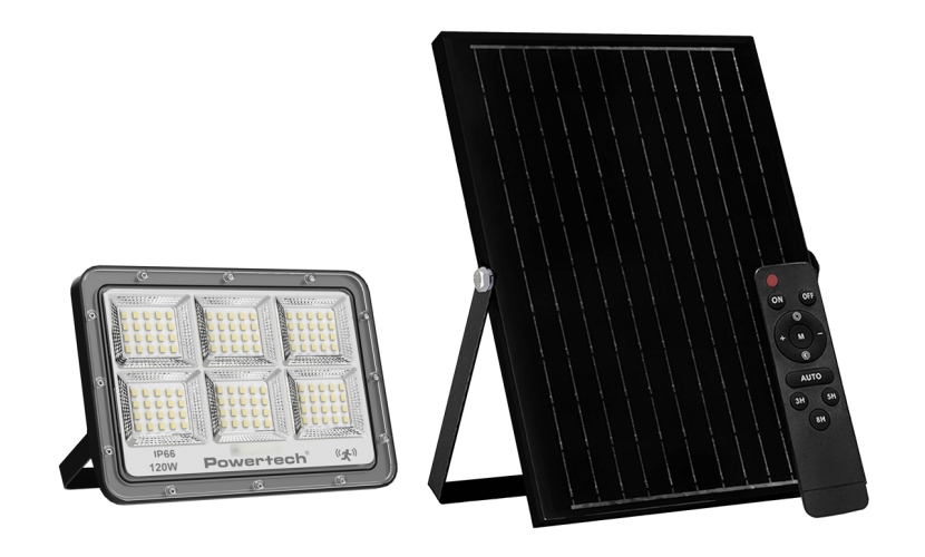 POWERTECH LED ηλιακός προβολέας PT-1457 με τηλεχειριστήριο, αισθητήρας κίνησης, 120W, 4000K, 1500lm, IP66