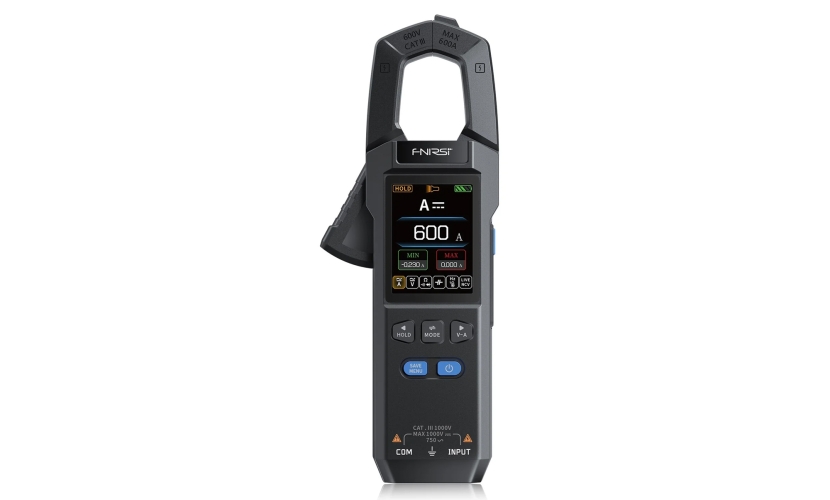 Τεχνικά χαρακτηριστικά-Screen: 2.0" TFT color screen-Screen Resolution: 240x320 pixels-Battery: 3.7V, 1500mAh Lithium Battery-Charging Specification: USB Type-C, 5V/1A-Maximum Jaws Size: 25mm-Temperature Unit: °C/°F-DC Voltage: 9.999V / 99.99V / 999.9V-AC Voltage: 9.999V / 99.99V / 750.0V-DC & AC Current: 99.99A / 600.0A-Resistance: 99.99MΩ / 9.999MΩ / 999.9KΩ / 99.99KΩ / 9.999KΩ / 999.9Ω-Capacitance: 9.999mF / 99.99mF / 999.9μF / 99.99μF / 9.999μF / 999.9nF / 99.99nF / 9.999nF-Frequency: 9.999MHz / 999.9KHz / 99.99KHz / 9.999KHz / 999.99Hz / 99.99Hz / 9.999Hz-Temperature: -55~1300 °C / -67~2372 °F-Diode Measurement: Support-On-off Test: Support-Non-Contact Voltage Check (NCV): Support-Zero Fire Wire Check: Support-Measuring Mode: 1. General Measurement, 2. Waveform Display, 3. Power Measurement-Measurement Gear: Manual Adjustment-Torch: Support-Data Zeroing: Support-Maximum/Minimum Value: Support-Waveform Display: Support-Power Calculation: Support-Data Hold: Support-Data Storage and Viewing: Up to 30 groups of data-Language: Chinese / English-Brightness Adjustment: 10-speed adjustment-Auto Power Off: OFF / 5min / 15min / 30min-Firmware Upgrade: Support-AC Current: 4A / 40A / 600A-Resistance: 400Ω / 4KΩ / 40KΩ / 400KΩ / 4MΩ / 40MΩ-Product Size: 193x74x32mm-Product Weight: 194g
