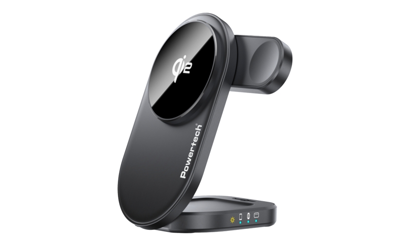 POWERTECH ασύρματος φορτιστής PT-1491, 3 σε 1, Qi2, 15W, μαύρος