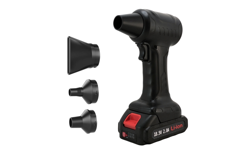 Ηλεκτρικό air duster με ισχυρό κινητήρα της Kinzir, κατάλληλο για απομάκρυνση φύλλων, νερού ή χιονιού από αυτοκίνητα αλλά και σκόνης από αξεσουάρ και οικιακά αντικείμενα όπως πληκτρολόγια, PC cases, κλιματιστικά, ηλεκτρονικές συσκευές κ.α.Τροφοδοτείται από επαναφορτιζόμενη μπαταρία χωρητικότητας 10000mAh, η οποία είναι αποσπώμενη και φορτίζει ανεξάρτητα από το υπόλοιπο σώμα.Συνοδεύεται από διάφορα ακροφύσια κατάλληλα για διαφορετικές εφαρμογές.