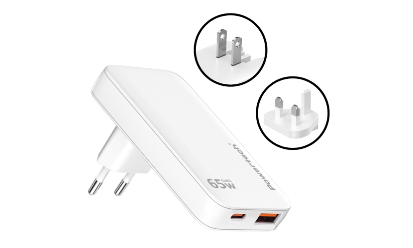 POWERTECH φορτιστής τοίχου PT-1532, EU/UK/CN βύσμα, USB/USB-C, 65W, GaN, λευκός