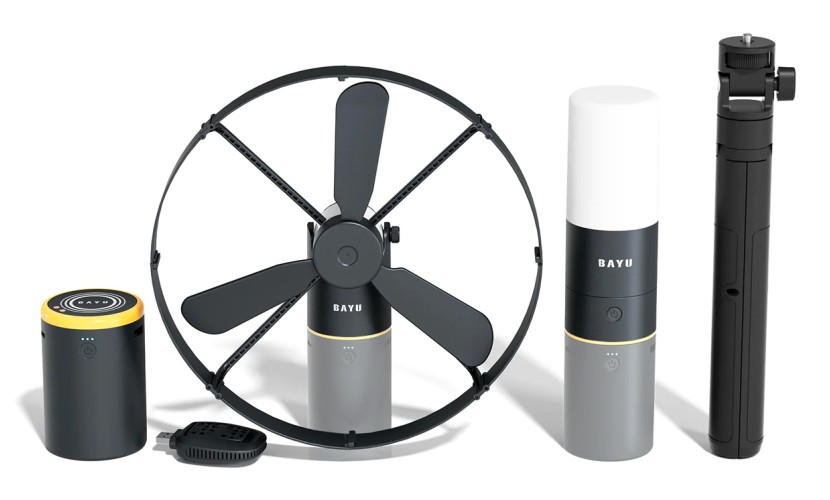 Camping kit της BAYU σχεδιασμένο για υπαίθριες δραστηριότητες όπως camping, εκδρομές, πεζοπορία κ.α.Αποτελείται από powerbank, ανεμιστήρα, φωτιστικό και συσκευή για κουνούπια για να καλύπτει κάθε σας ανάγκη.Χάρη στον modular σχεδιασμό τους όλες οι συσκευές τροφοδοτούνται μέσω του powerbank προσφέροντας σας ευκολία στη χρήση και απαλλαγή από πολλαπλές φορτίσεις.