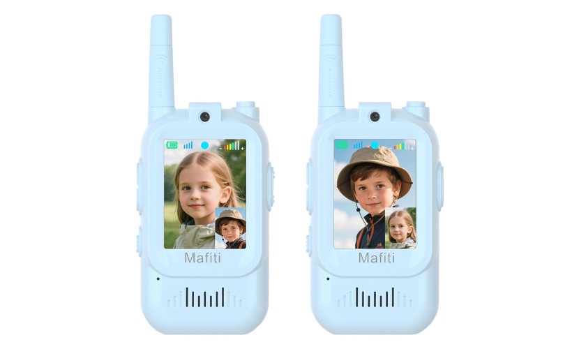 Παιδικά walkie talkie Mafiti με οθόνη και κάμερα, που επιτρέπουν στα παιδιά όχι μόνο να μιλούν, αλλά και να βλέπουν το ένα το άλλο μέσω βιντεοκλήσεων.Είναι ειδικά σχεδιασμένα για μικρά παιδιά, με απλή λειτουργία ενός κουμπιού, μικρό μέγεθος και ελαφριά κατασκευή, ώστε να τα χειρίζονται εύκολα.Διαθέτουν λειτουργία αλλαγής φωνής με 4 εφέ που κάνει το παιχνίδι ακόμα πιο διασκεδαστικό.Τροφοδοτούνται από επαναφορτιζόμενη μπαταρία, χωρητικότητας 650mAh, η οποία φορτίζει μέσω θύρας USB-C.