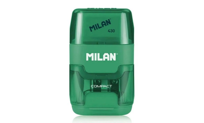 Διπλή ξύστρα μολυβιών της MILAN με γόμα και κάδο απορριμμάτων για καθαρό και εύκολο ξύσιμο των μολυβιών χωρίς υπολείμματα.Διαθέτει διάφανο χρωματιστό σώμα με καπάκι και είναι συμβατή με τους περισσότερους τύπους στρογγυλών, εξάγωνων και τρίγωνων μολυβιών.