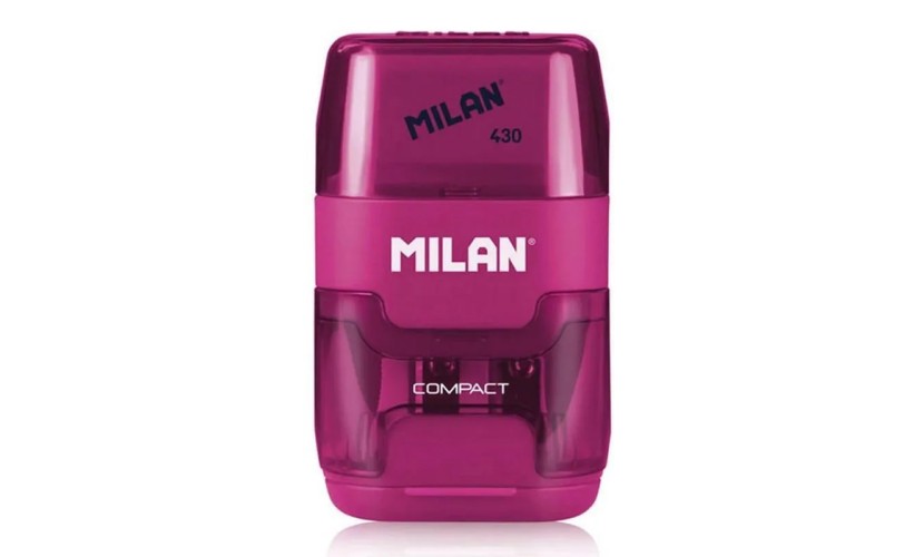Διπλή ξύστρα μολυβιών της MILAN με γόμα και κάδο απορριμμάτων για καθαρό και εύκολο ξύσιμο των μολυβιών χωρίς υπολείμματα.Διαθέτει διάφανο χρωματιστό σώμα με καπάκι και είναι συμβατή με τους περισσότερους τύπους στρογγυλών, εξάγωνων και τρίγωνων μολυβιών.