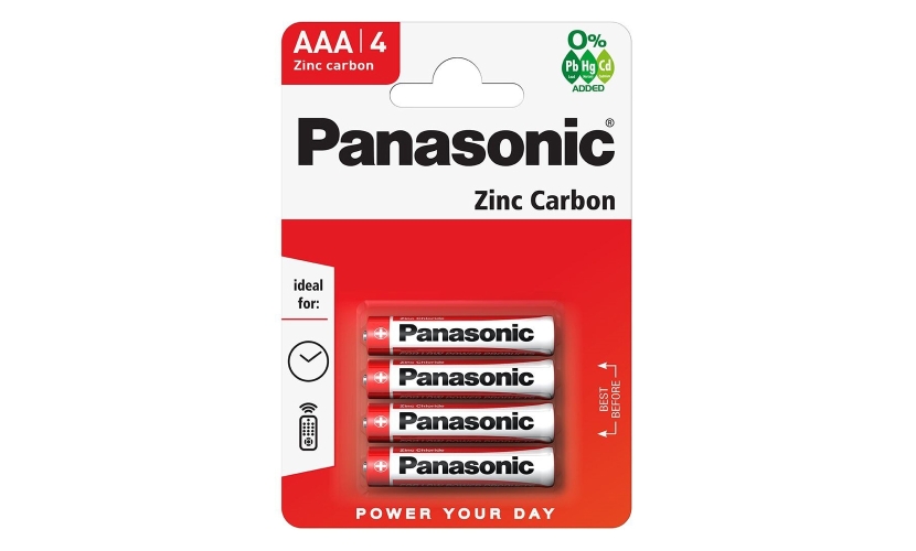 Zinc carbon μπαταρίες της Panasonic, ιδανικές για χρήση σε μικρές ηλεκτρονικές συσκευές όπως τηλεχειριστήρια, ρολόγια, ζυγαριές κ.α.Οι zinc carbon μπαταρίες της Panasonic προσφέρουν μεγάλη διάρκεια ζωής και κορυφαία απόδοση.