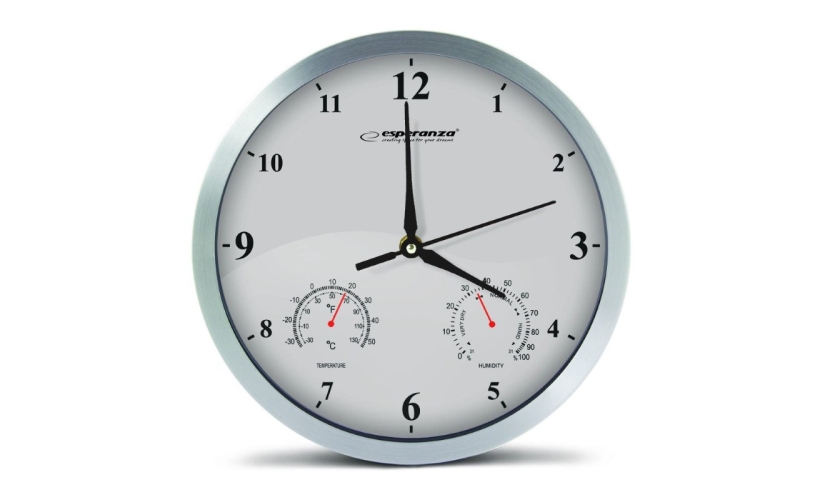 Τεχνικά χαρακτηριστικάClock diameter: 25 cmClock thickness 3.6 cmThe frame clock of high quality plasticThe clock face from a special art paperQuiet and very precise quartz movementRange of measured temperature: -30 ° C ~ + 50 ° C (-30 ° F ~ 110 ° F)Humidity measuring range: 0 ~ 100%Hook on the wall montage includedPower supply: 1 x 1.5V AA battery (δεν συμπεριλαμβάνεται)